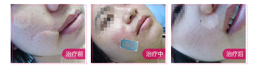 患者情况:该患者脸上受伤,伤口愈合后留下凹陷疤痕,疤痕长约5厘米,较深的地方约有1毫米,使用过疤痕贴等各种膏药均无效,在我院治疗后凹陷部位已恢复平整光滑。