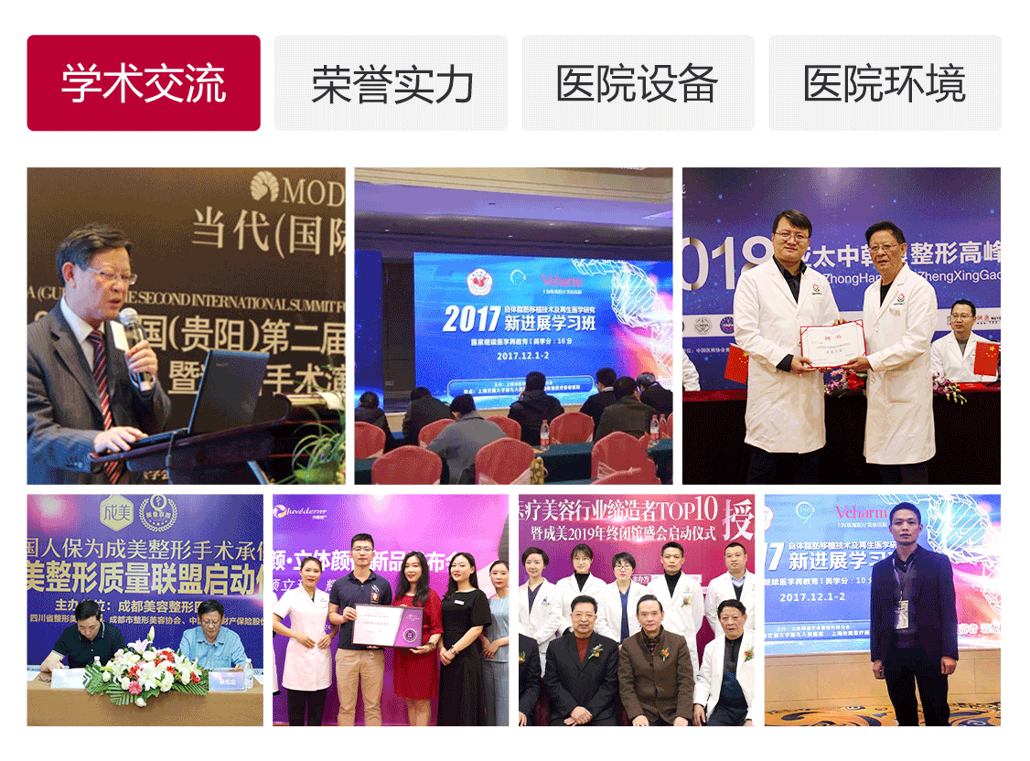 成都美容整形医院成立于1988年,是西南较早一批专业整形美容医院,37年来医院专业团队建设机制、安全临床质量体系、五星优质服务,获得社会各界广泛认可,是西部医疗美容外科技能进修培训基地、曾获2007年度影响成都风尚健康品牌奖。医院皮肤疤痕科将医学的严谨与美学标准相结合,为患者量身打造高品质的特色医疗美容服务,让大家在成美蜕变美丽,找回自信。【详细】