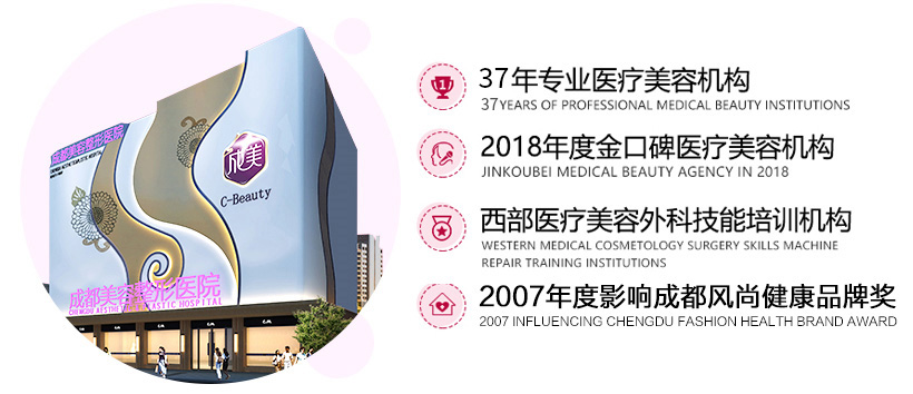 成都美容整形医院成立于1988年,是西南较早一批专业整形美容医院,37年来医院专业团队建设机制、安全临床质量体系、五星优质服务,获得社会各界广泛认可,是西部医疗美容外科技能进修培训基地、曾获2007年度影响成都风尚健康品牌奖。医院皮肤胎记科将医学的严谨与美学标准相结合,为患者量身打造高品质的特色医疗美容服务,让大家在成美蜕变美丽,找回自信。【详细】