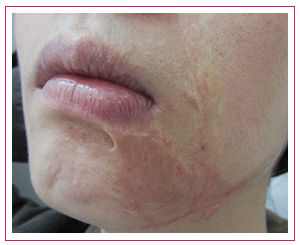 ![]() | 危害1:烫伤挛缩疤痕如果出现在面部与眼睑缘、口唇边缘垂直部位,很容易因牵拉造成不同程度的皮肤挛缩畸形,如唇外翻等。 |