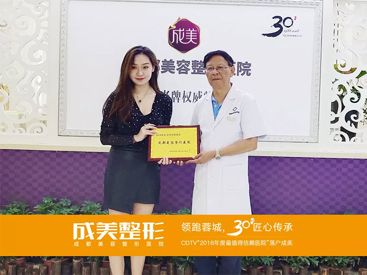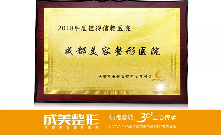 2018年8月14日, “2018年度值得信赖医院”落户成都美容整形医院,能荣获此殊荣的成美整形医院凭借30年历史沉淀,医师30年匠心传承获得此荣誉。